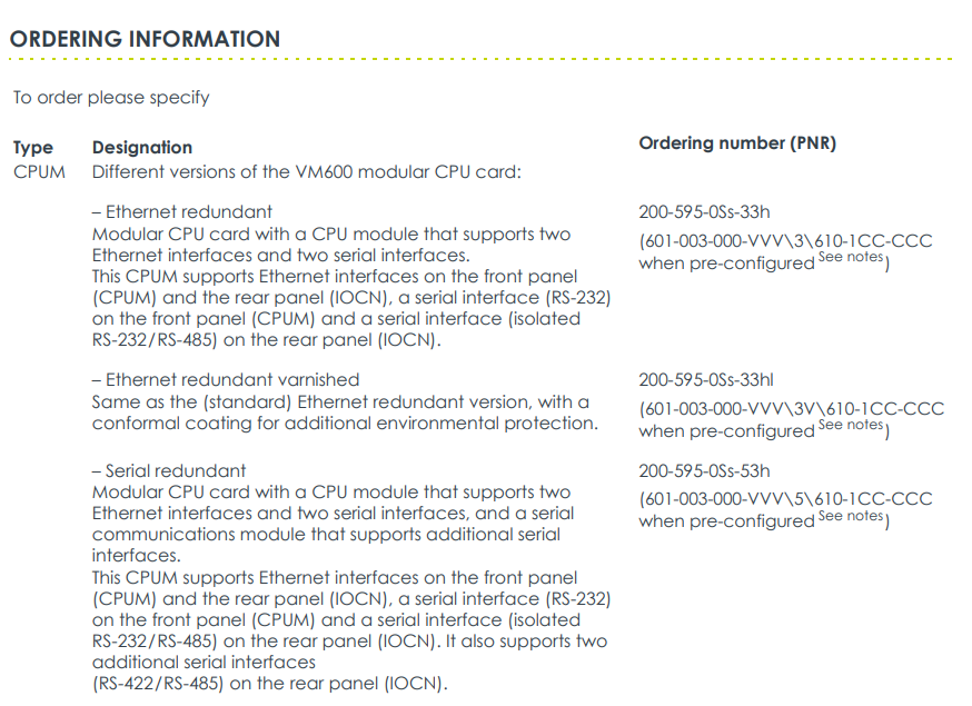 الوظيفة والتفاصيل CPUM 200-595-075-531 هو بطاقة وحدة معالجة مركزية/وحدة تحكم للرف في نظام VM600.